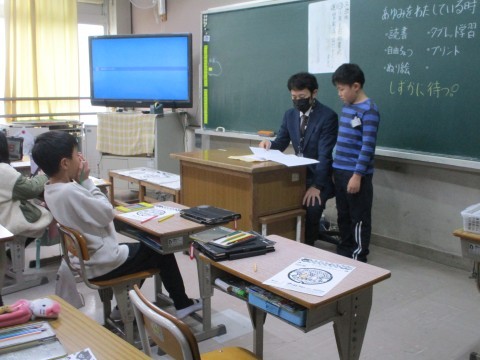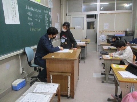 一人ひとりに通知表を渡します。先生からは,たくさん褒めてもらってるのかな?