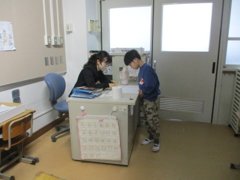 2学期に頑張ったところを褒めてもらっています。