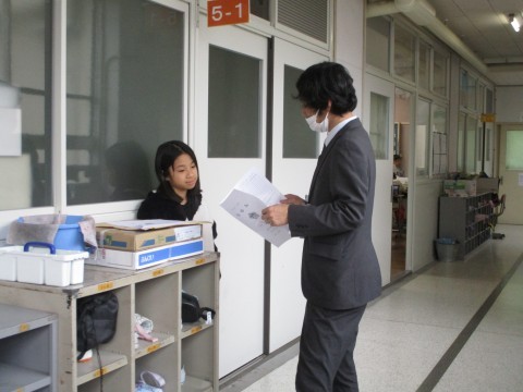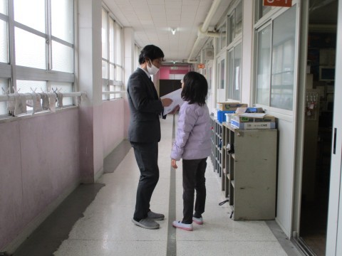 先生から通知表をもらう時に,「自分の2学期のがんばりはどうだったか」を振り返っています。