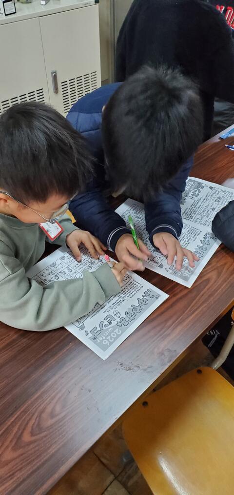 今日は朝の会で冬休みビンゴをしました。