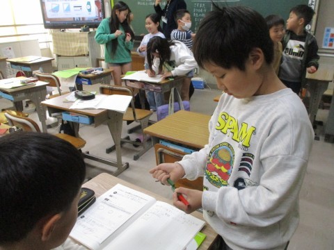 「じしゃくのふしぎ」について学習をしています。じしゃくにくっつく物とくっつかない物を調べています。