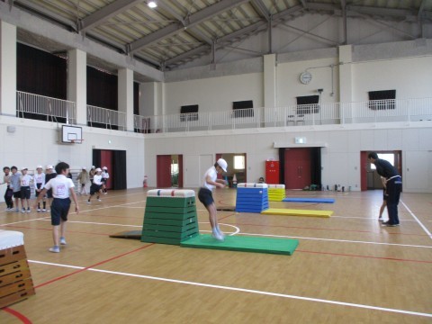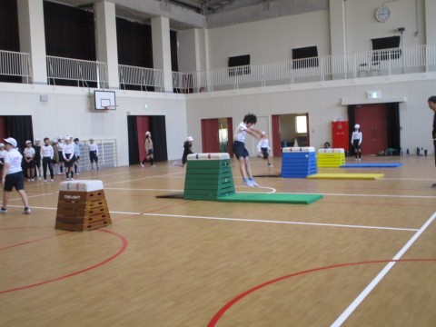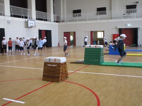 跳び箱の練習をしています。「7段,とべたよ!」と嬉しそうです。