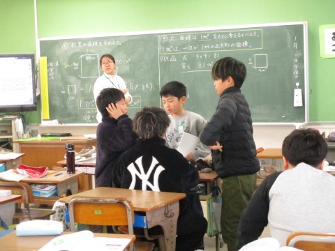 広い面積を求めるときは,何を使えばいいかな?友だちと相談しています。