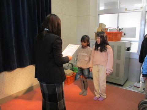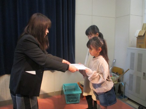 読書感想画コンクールと子ども会のイーストカップ優勝,第15回シスターズカップ優勝,第5回メモリーズカップ優勝の表彰を行いました。