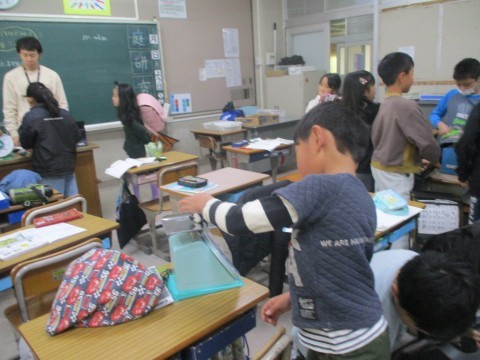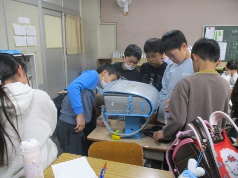 ランドセルの重さを測っています。ちょっと重いですがグラムを使うのかな?