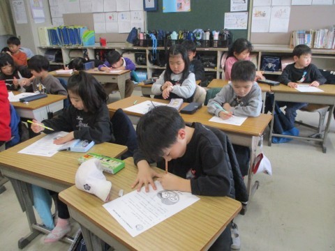 来週の「命の授業」のお話を聞く前のアンケートをしています。