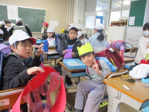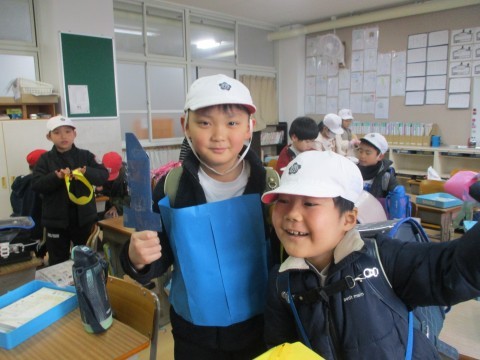 素敵な王冠をかぶっています。スカートや鎧,剣をつくった人もいます。スカートを作った人は,「おかあさんにプレゼントする」と言ってました。