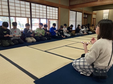 交響楽団芸術鑑賞の後は,大仙公園に移動し,お弁当を食べ,茶の湯体験をしました。