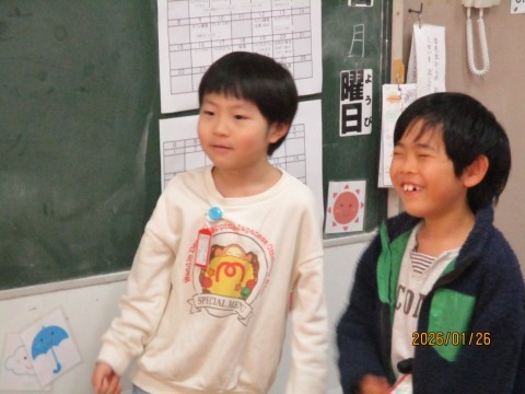 今日の朝の会ではつくのカフェに向け店員の声のかけ方の練習をしました。みんなとても上手に出来ていました。