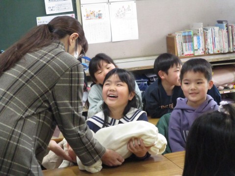 赤ちゃんがどのようにして胎内で生活しているのかを知り,生まれてきた赤ちゃんはどの子もかけがえのない存在であることを学びました。一人ひとりが,本当の赤ちゃんと同じ重さ,身長の人形を抱かせてもらいちょっとお兄さん,お姉さんになったようです。