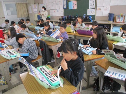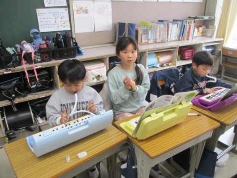 きらきら星をカスタネットと鍵盤ハーモニカで合奏をしています。とっても上手になりました。