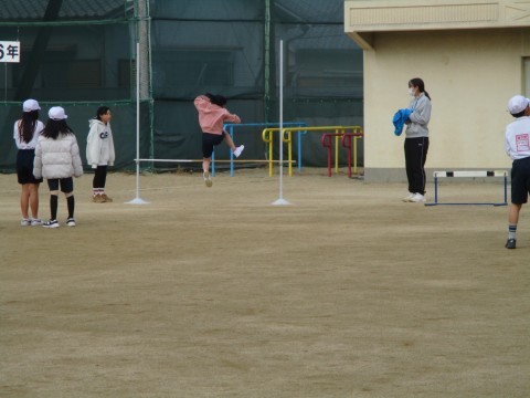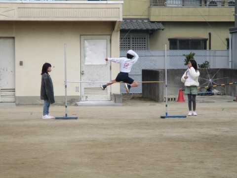走り高跳びの練習をしています。「80cmとべたよ」「もっと,とべたでぇ」と教えてくれました。