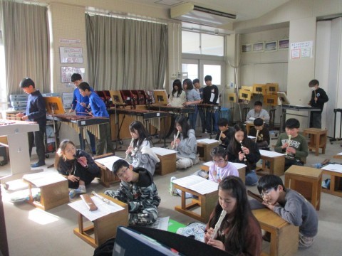 「アフリカンシンフォニー」の合奏の練習をしています。テンポがいいので自然に体が動きます。