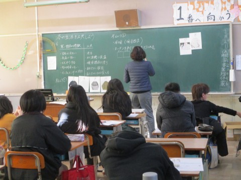 「冬の生活を工夫しよう」の学習では,寒い季節にどんな工夫しているかを発表しています。