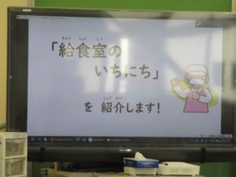 栄養士の先生から「給食のいちにち」の紹介をしてもらいました。朝早くから調理が始まることや野菜や食器は3回あらうことなど,知らなかったことをたくさん学べました。子どもたちは,日々の給食が多くの工夫と努力によってつくられていることを知り,「ありがとうの」の気持ちを新たにしました。