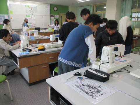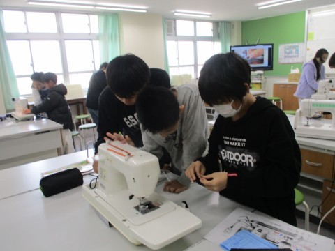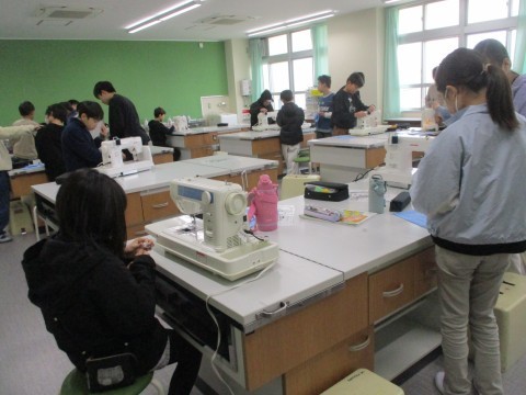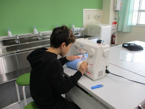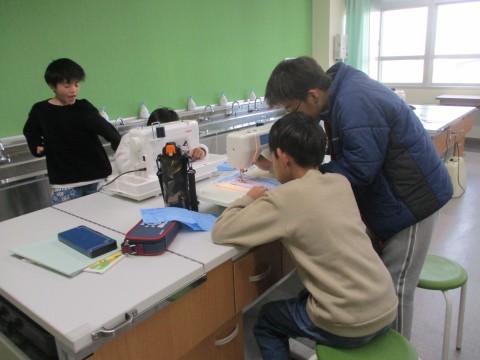 練習布を使って,ミシンの練習をしています。みんな上手です。