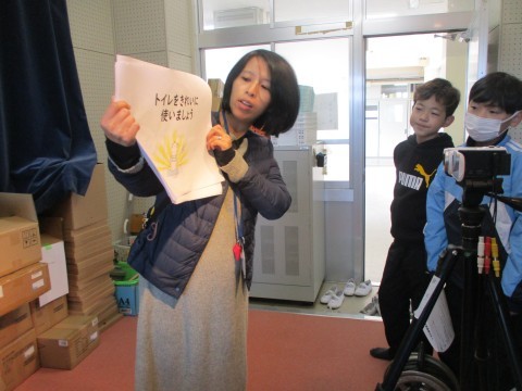 今日は,校長先生から「いじめ」の話がありました。どんなことがあってもいじめはいけないこと,いじめのない学級とは,「学校や学級のルールを守る学級」「ニコニコ笑顔,ていねいな言葉,明るいあいさつができる学級」などいじめのない学校にしましょうとお話がありました。トイレの改修工事が終わりました。清掃担当の先生から新しいトイレの使い方について説明がありました。みんなできれいを続けましょう。