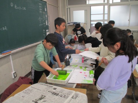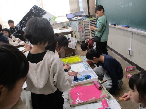 でき上った版を刷っています。きれいに刷れるといいですね。