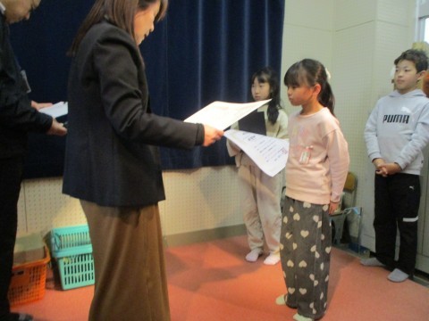 子ども会ポートボール,健康啓発標語コンクール,堺市子ども市展の表彰を行いました。