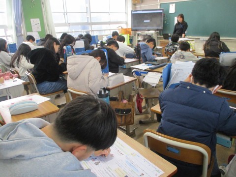 テストに取り組んでいます。聞き取りもあるのでがんばって!
