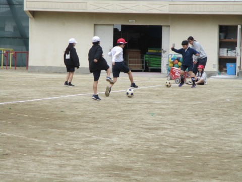 寒さに負けず,サッカーの練習をしています。しっかりボールをおいかけて!