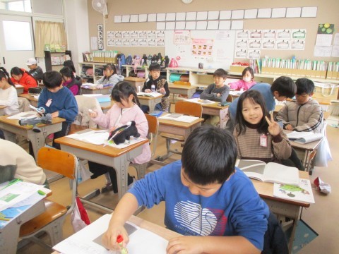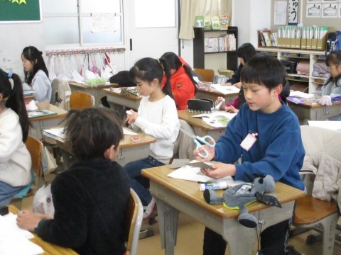 正方形の紙をおって,半分にします。どんな形になったかな?