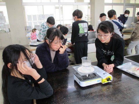 水を熱して変化を観察しています。