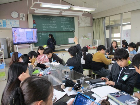 水を熱して出てきたあわの正体はなにか。実験して分かったことを交流しています。