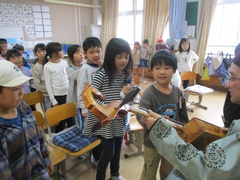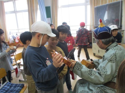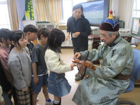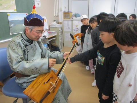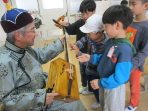 子どもたちに馬頭琴を触らせていただきました。音が出ると喜んでいました。貴重な体験をありがとうございました。