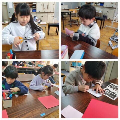 その後は切り紙でお内裏様とお雛様にチャレンジしました。