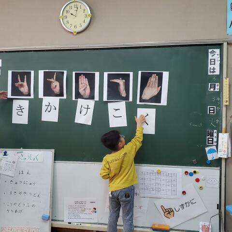 今日は動く絵本と指文字クイズ、トランプでブタのしっぽをしました。