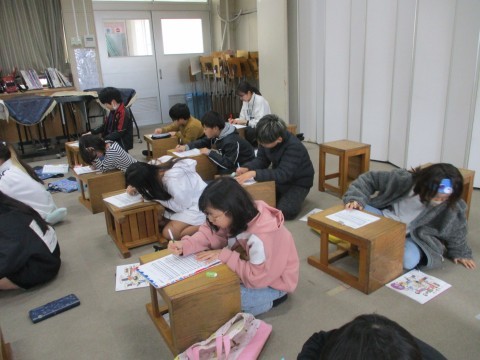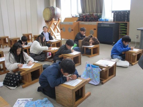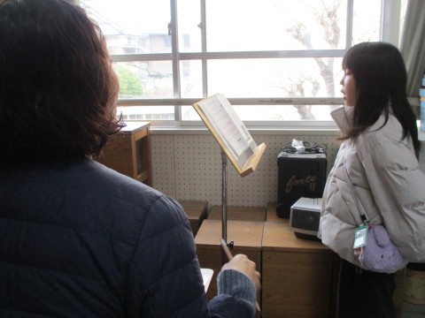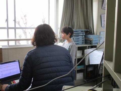 歌のテストと筆記テストをしています。がんばって!