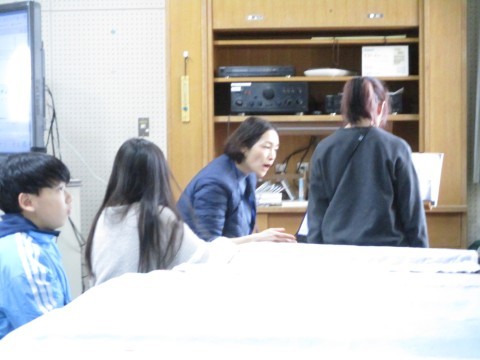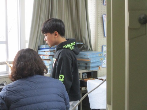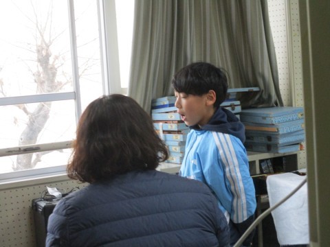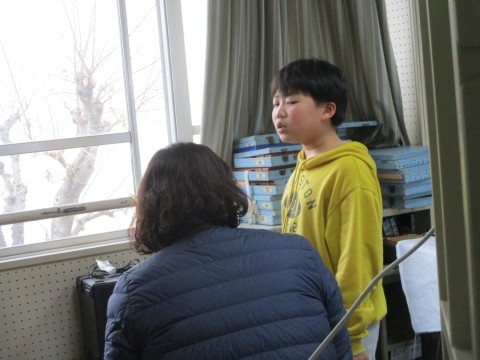 歌のテストと筆記テストをしています。