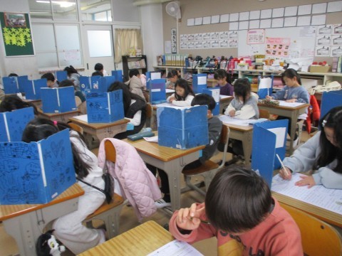 「学年のまとめ」のテストをしています。問題をしっかり読んで答えましょう!