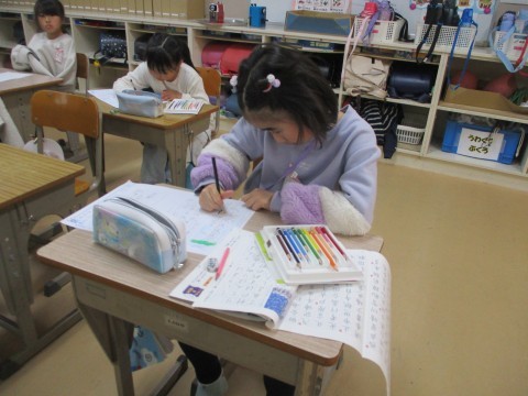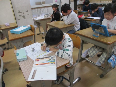 書写プリントに取り組んでいます。ゆっくり,ていねいに書きましょう!