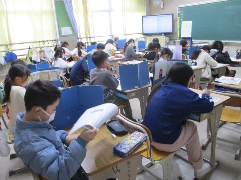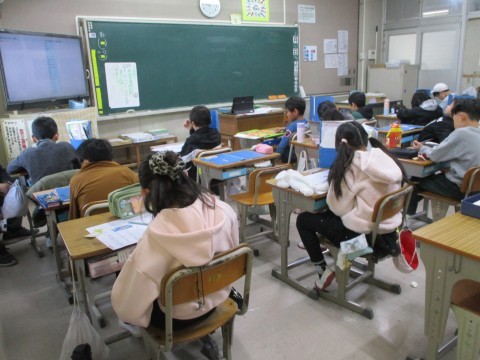 「モチモチの木」のテストをしています。がんばって!