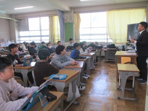 先生の話をしっかり聞いています。4月からは,6年生ですね。がんばって!
