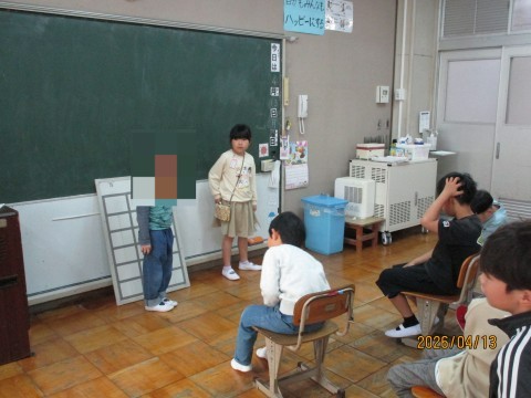 学校が始まり、初めての朝の会がありました。先生やみんなの自己紹介をしました。これから楽しく勉強しましょうね!