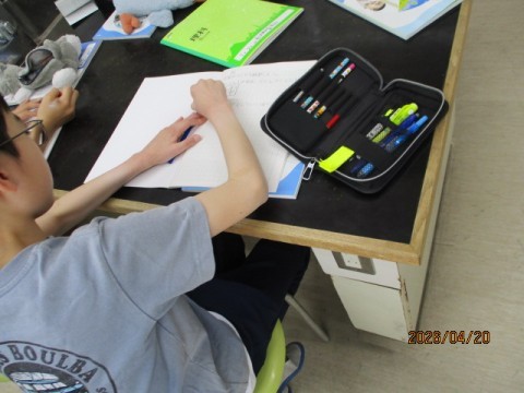 ノートに問題や予想を書いています。家でもぜひノートをみてあげてください。