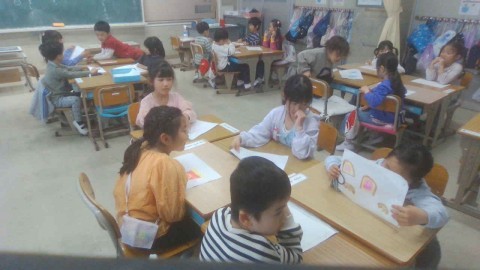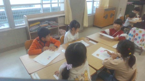 グループに分かれて,自分の好きな食べ物を紹介しました。