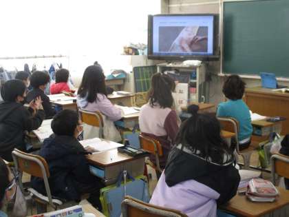 2組は,道徳です。日本の伝統を大事にする教材文で,ふろしきのいいところを紹介する動画を見ていました。私もあらためて,ふろしきも便利かもと思いました。昔はよく使っていましたね。