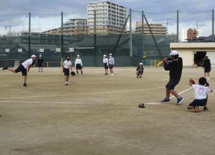 2組は,ソフトボールを楽しんでいました。クラブチームや子ども会などで,野球をやっている子が多いので,本格的でした。