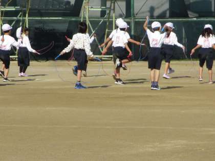 2組は,縄跳びの練習をしていました。寒いのですが,子どもたちは,まだ半そでの子もいて元気です。