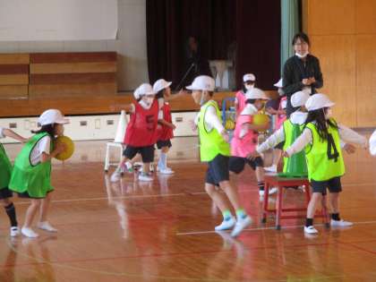 1組は,体育館でボール当てのゲームです。何回も練習してきたので,守りにすきがなくなってきましたね。