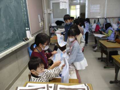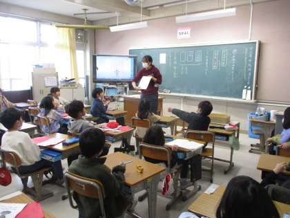1組も2組もお手紙の書き方の勉強をしていました。「ていねいな言葉で書きます。」とか「敬語を使います。」とか発表していました。1年生なのに,敬語という言葉を知っているのですね。