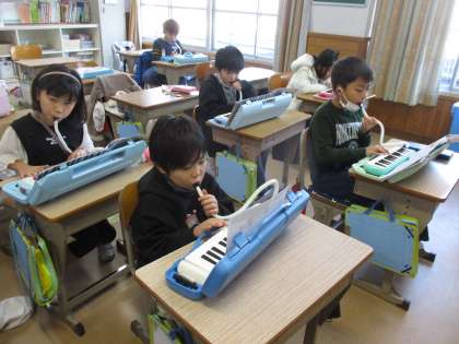 1組は,鍵盤ハーモニカのテストなので,みんな必死で練習中です。どきどきしますね。