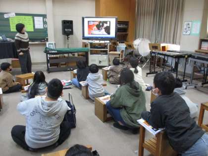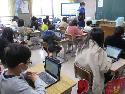 おまけの1枚は,音楽です。お琴の弾き方を動画で見ています。3学期は実際に弾いてみるのかも。真剣に動画を見ていました。