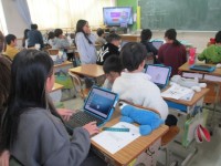 1組は,タブレットで好きな詩を選んで,自分の詩集を作っているところです。