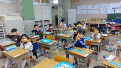 1〜5の数のブロックを数えてならべたり、重ねたりして、数の学習をしました。