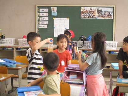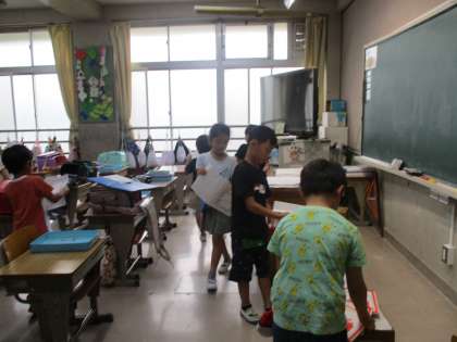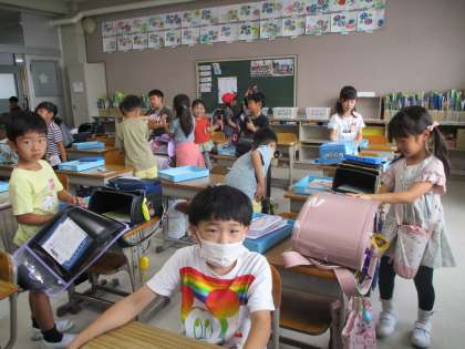入学してから2か月が過ぎました。あさの準備にも慣れてきました。ランドセルから宿題や連絡帳などをだして、前の机に提出しています。
